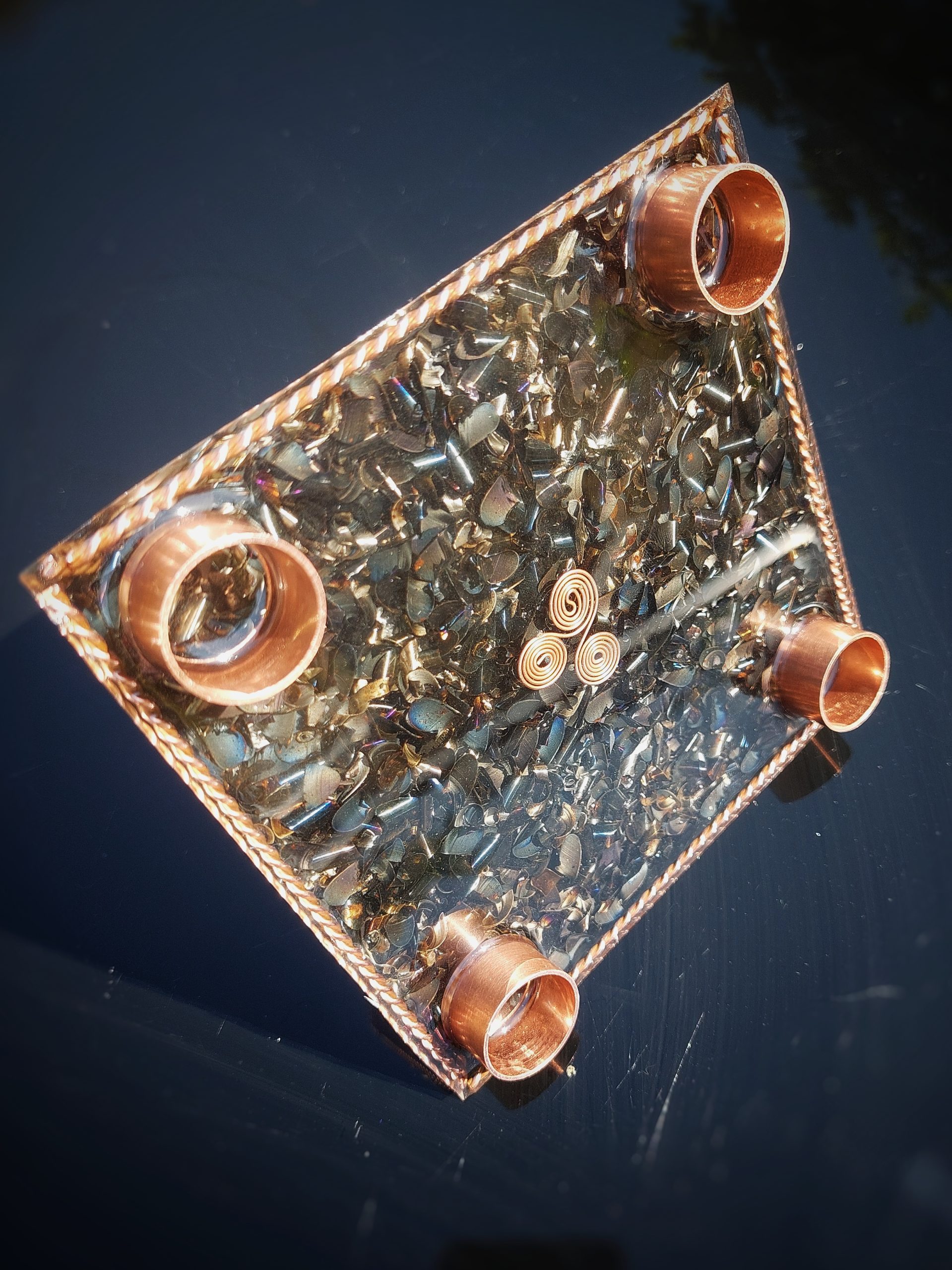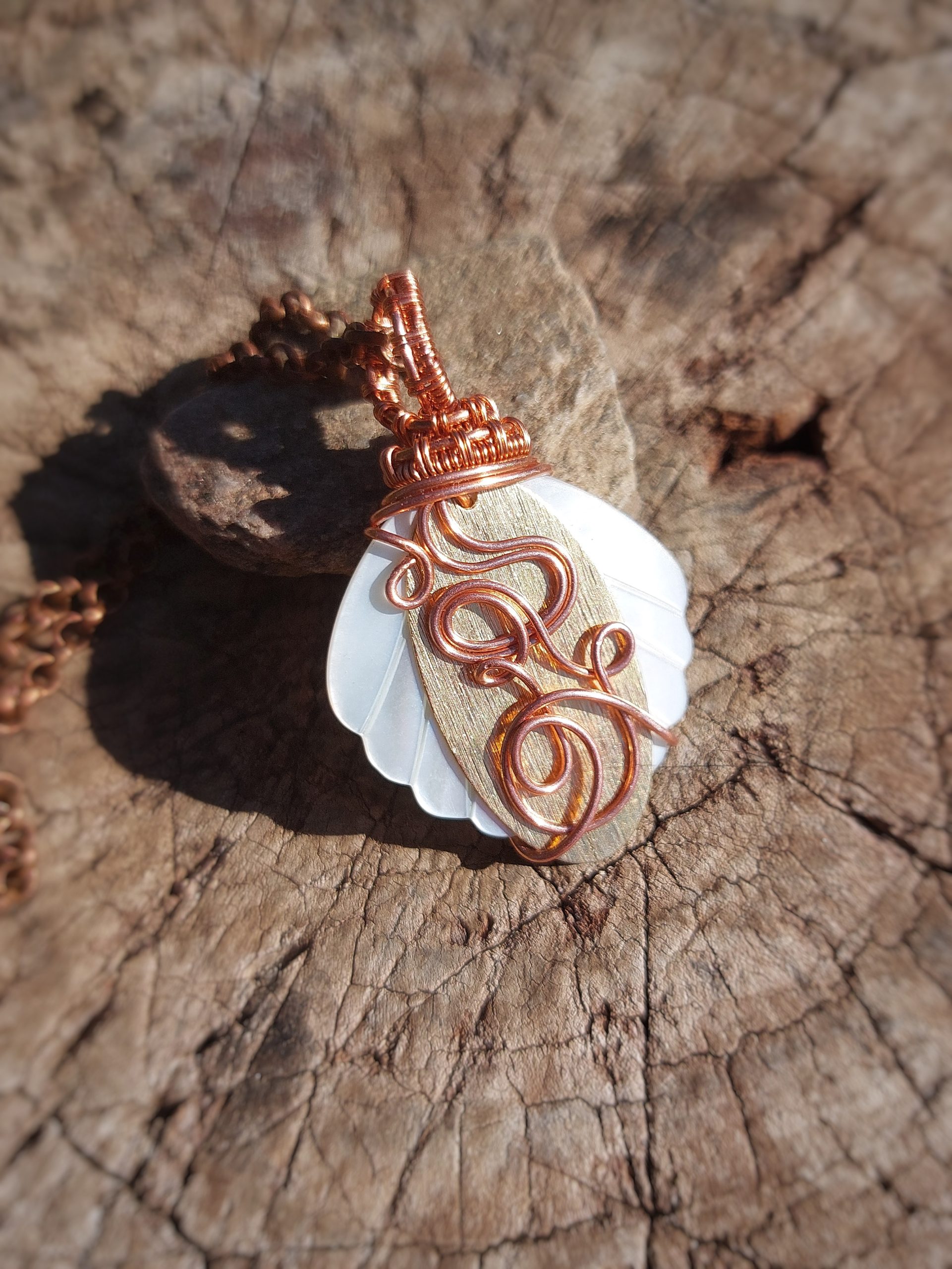 Parelmoer met messing en koperdraad