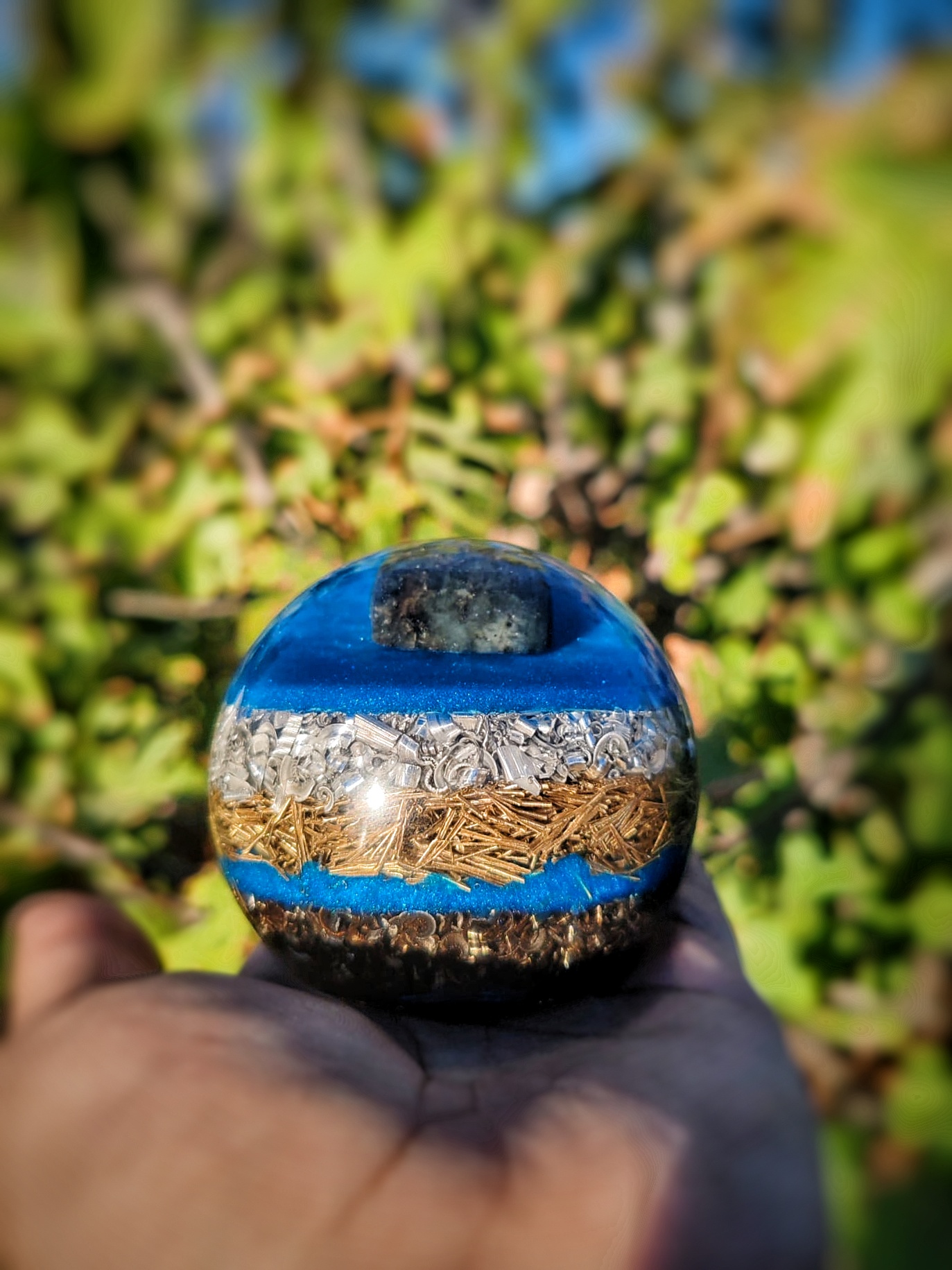 Deze Tree Of Life Seleniet geeft verschillende effecten afhankelijk van de lichtbron.