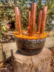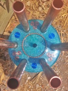 Gemaakt van 2,5mm koperdraad met een diameter van ongeveer 5 cm.