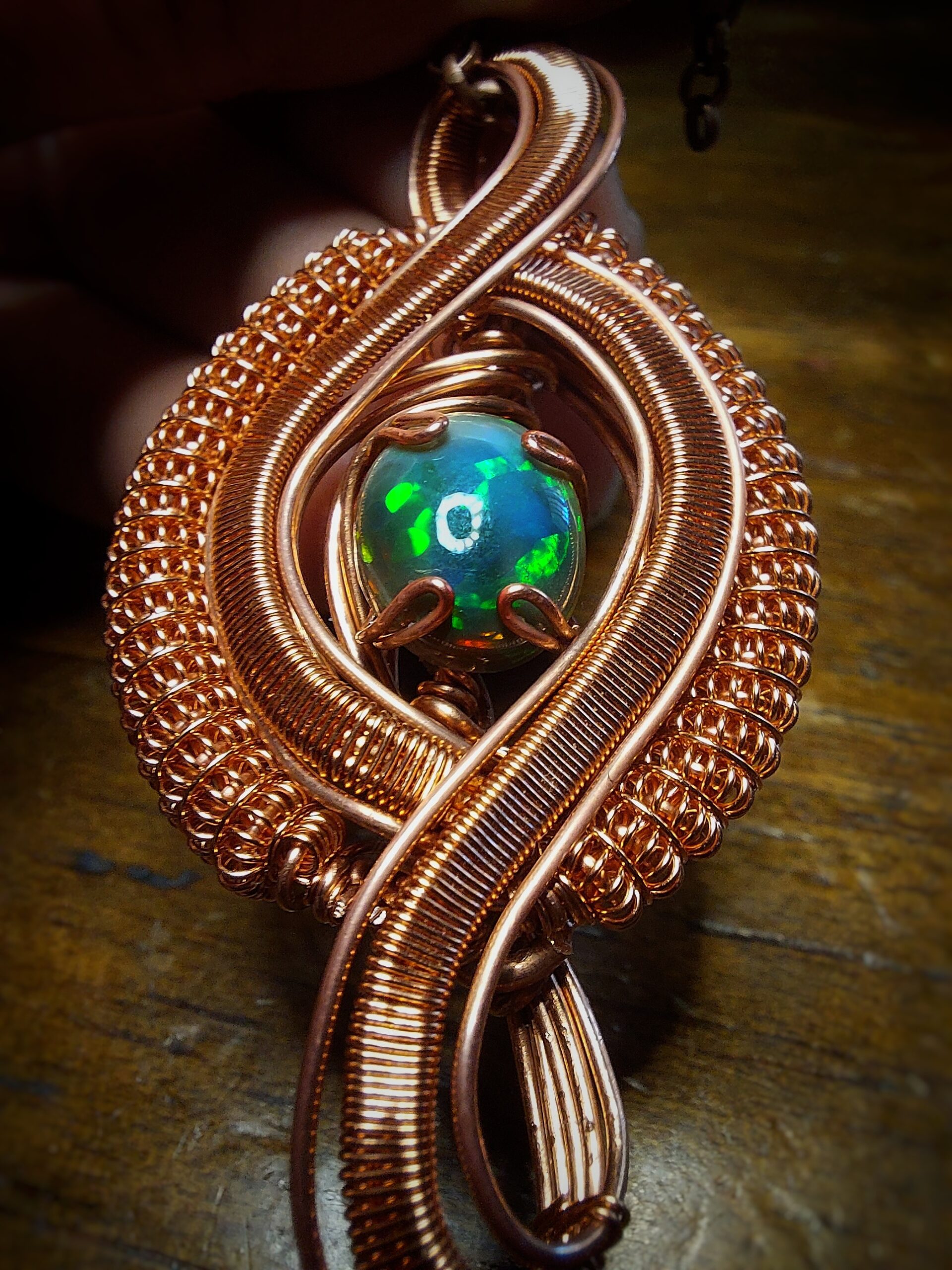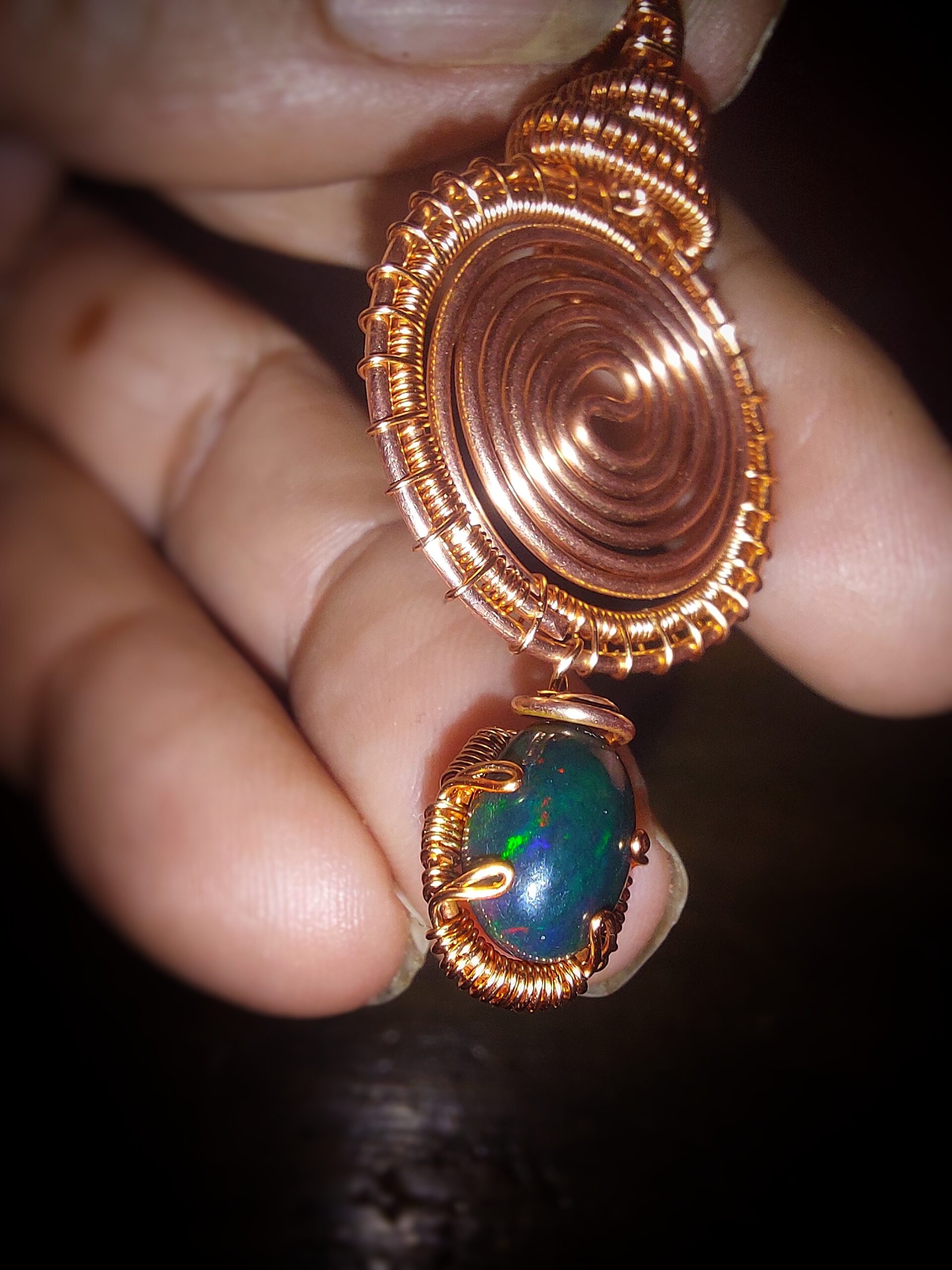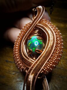 Zwarte Opaal uit Ethiopie met koperdraad