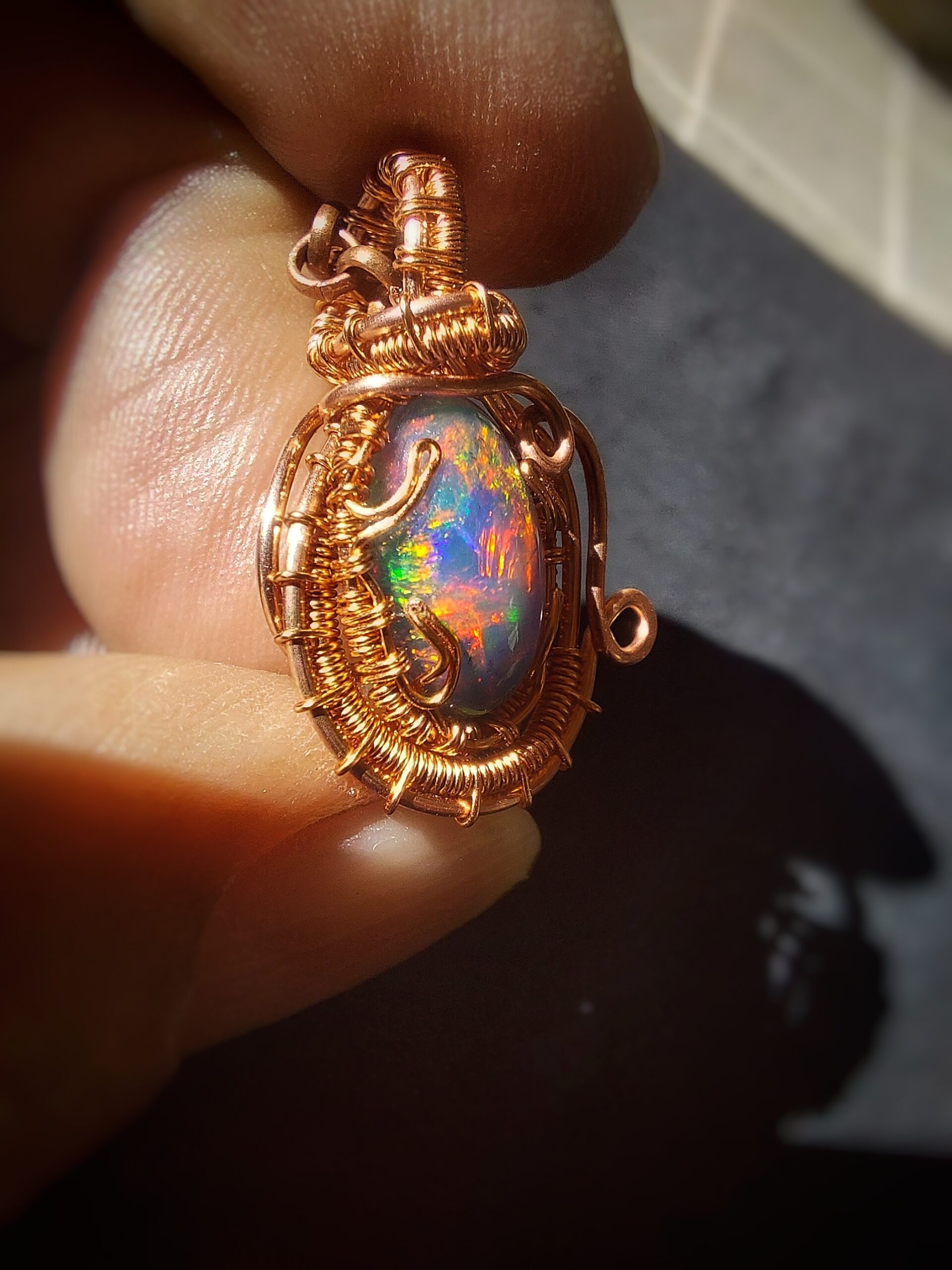 Opaal met Tesla Coil en 1/6 Sacret Cubit ring